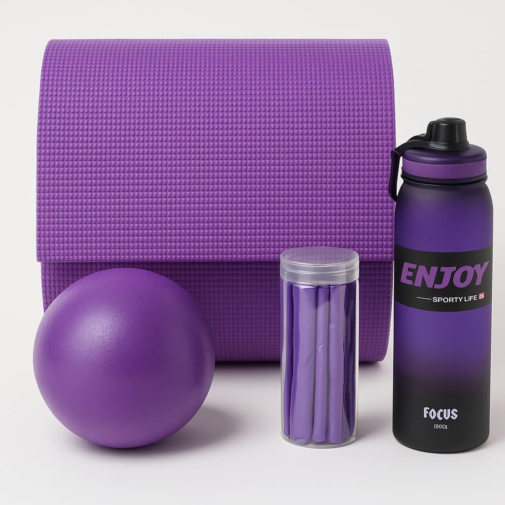 پک کامل پیلاتس و یوگا مدل بنفش شامل مت یوگا، توپ پیلاتس، کش مقاومتی و قمقمه ورزشی است.مجموع ارزش اقلام در خرید تکی بیش از ۱,۴۰۰,۰۰۰ تومان است؛ این پک با قیمت اقتصادی یک انتخاب کامل برای یوگا، پیلاتس و تمرین خانگی محسوب میشود. یک ست هماهنگ، کاربردی و مناسب برای تمرینهای یوگا، پیلاتس، حرکات کششی و ریکاوری و تمرینات در منزل.